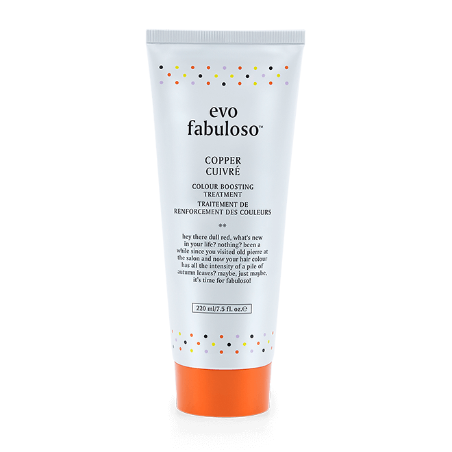 A copper coloured hair treatment for blonde hair. Achieve a refreshed, revived and toned colour boost in just 3 minutes with Evo fabuloso Colour Boosting Treatments.